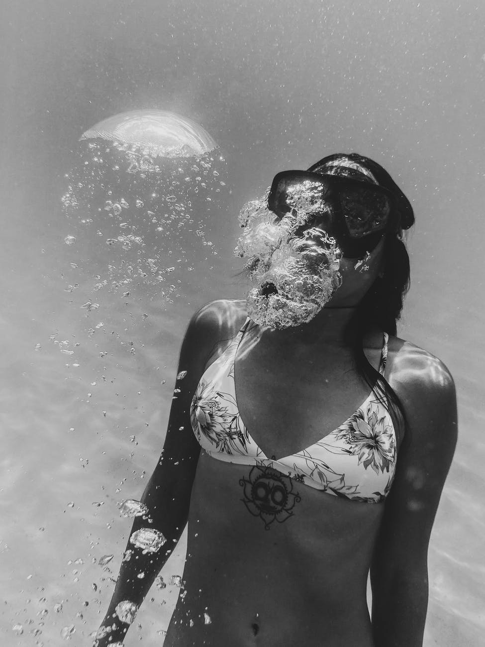 Practice breathing like a swimmer – quick and deep inhale through the mouth, and long slow exhale from the nose by putting your head under the water and watching your bubbles. You should be able to produce a steady stream of little bubbles from each nostril that can last up to about 10 seconds.