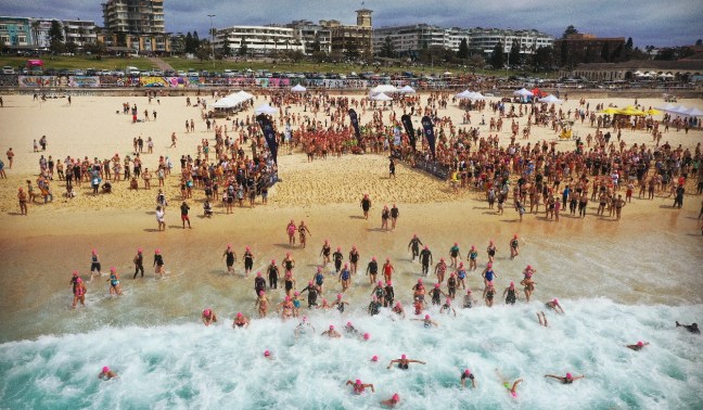 Cut through and keep in control, don’t bob around like a cork. Swimming in rough ocean conditions means you can be tossed around like a cork if you don’t take control. Yes, it’s a workout and yes, it’s hard to keep swimming fast in rough conditions. You have keep moving forward to maintain momentum, to cut through the waves and to keep in control. When a big wave comes, from any direction, decide early to dive underneath or cruise over the top, but keep moving and don’t stop.