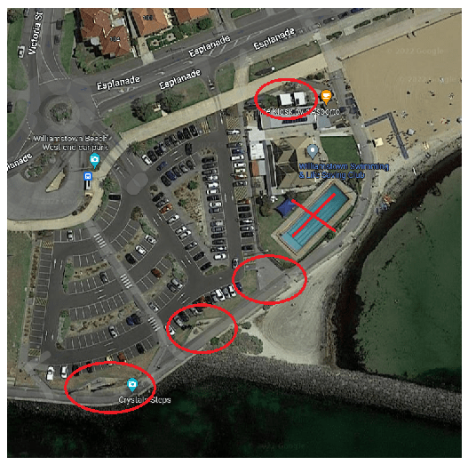 You can clearly see swimmers meeting in the green circles in the site analysis aerial picture issued by Hobsons Bay City Council (above).