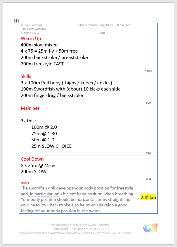 - Focus on your technique and trying to do everything (as much as possible) correctly. Sometimes swimmers say things like: “You just have to crash and bash your way through.” But that is understating what they themselves are doing. They are staying strong in their core and maintaining a stable platform for their levers to operate effectively. Yes sometimes you will crash through a wave and sometimes the wave will roll over you completely but whatever happens you have to remain long, straight and ready to start your next stroke and keep kicking. Keep your legs close together while kicking, don’t do big kicks, keep them relatively small and fast. Hold your body as still as possible. The idea is to cut through the water, the chop and the waves, not get thrown around by them. So that means a you need a nice tight straight body position, not a loose core that’s not supporting your arm movements and kick.