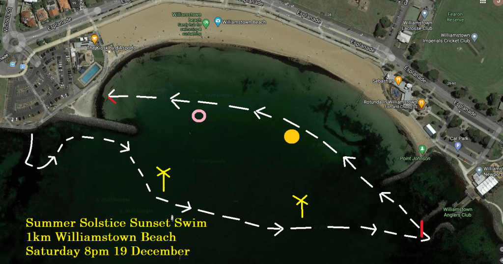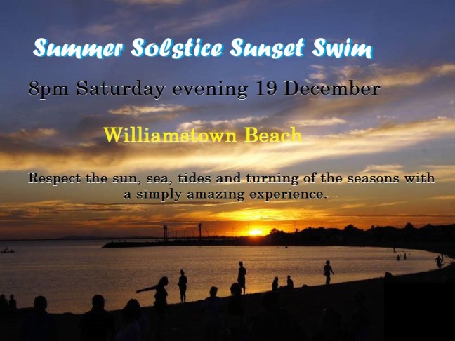BOOK HERE for limited places in the 2020 Summer Solstice Sunset Swim at Williamstown Beach.